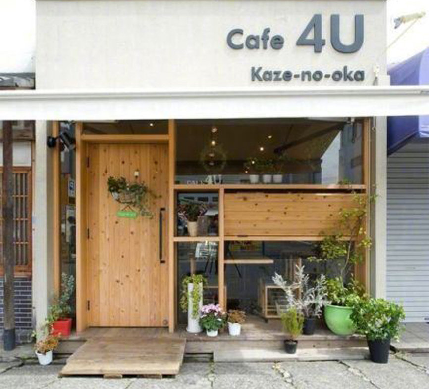 咖色門(mén)頭、簡(jiǎn)易英文店名畫(huà)+簡(jiǎn)易畫(huà)、原木色透明門(mén)臉,贊!